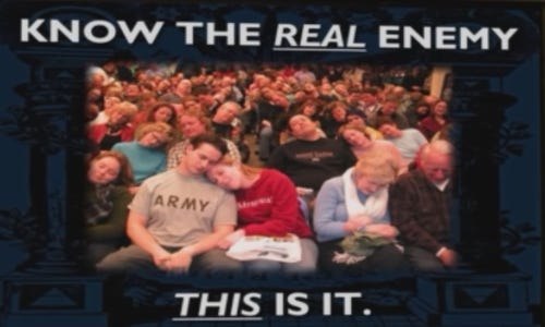 Do those psychopaths in the last slide really enslave us? And first of all, people who call them the Illuminati, there’s no such thing. Illuminati means that you’re enlightened, the illuminated ones. You wanna know who’s the enlightened ones? They’re in this room. We’re the Illuminati. The people who know what I’m talking about here are the Illuminati. They’re the illuminated ones. They’re the ones with the light. They’re the ones with the real knowledge. They wanna refer to themselves as the enlightened ones. They might have the dark sun. They don’t have the true sun. They’re imbued with the black sun. That means it’s all intellectual knowledge, and then you’re applying it for the totally immoral wrong reasons, which is to control and manipulate other people. There’s nothing illuminated about that.