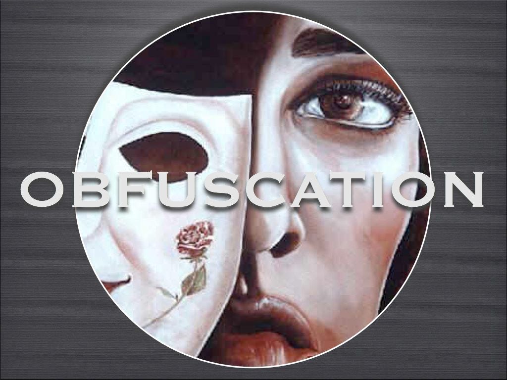 Obfuscate means to render obscure, unclear, or unintelligible, to bewilder or confuse. So obfuscation is the creation of confusion, and we talked about on earlier shows what confusion really is.